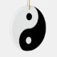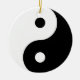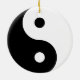 Ornement en céramique YinYangOrnament. Yin et Yang est un concept ancré dans la philosophie chinoise ancienne, qui représente l'idée du dualisme et de l'équilibre dans la nature. Il suggère que les forces opposées sont interconnectées et interdépendantes dans le monde naturel, interagissant constamment pour maintenir l'harmonie. Yin : Souvent associé à des qualités comme l'obscurité, la passivité, la féminité, le froid et la lune. Yang : Lié à la lumière, l'activité, la masculinité, la chaleur et le soleil. Bien qu'ils soient opposés, Yin et Yang sont complémentaires, et l'un ne peut exister sans l'autre. Le symbole bien connu, le Taijitu, représente visuellement cette idée, montrant un équilibre tourbillonnant entre l'obscurité et la lumière, chaque côté contenant un point de l'autre, symbolisant la présence de Yin à l'intérieur de Yang et vice versa. Le concept s'étend à divers aspects de la vie, tels que la santé, la nature et les relations personnelles, symbolisant la nécessité d'un équilibre entre les forces opposées.