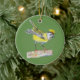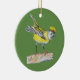 Joyeux crache, oiseau jaune dessinant sur un filet décoratif.