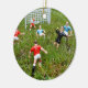 Un match de football a composé du football en plastique/de footballeurs comprenant l'arbitre et le gardien de but dans l'herbe