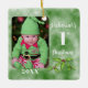 Célébrez le 1er Noël de votre bébé avec un ornement commémoratif pour votre arbre. Cet ornement en céramique est une excellente façon de commencer une tradition familiale et un cadeau patrimonial pour votre enfant plus tard dans la vie. Le traditionnel vert de Noël est l'arrière - plan. Ajoutez votre photo de votre petit, customisez le nom et l'année et vous avez un grand rappel d'un moment capturé dans le temps. Design ©Vann-Horn Créative Photo & Designs.
