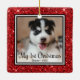 Cet adorable ornement photo de 1er Noël de Chiot avec un bord de parties scintillant rouge, les mots "Mon 1er Noël", le nom de votre chien et l'année sera belle sur votre arbre. Vous allez le chérir et aimer le sortir chaque année pour mettre sur votre arbre.