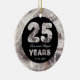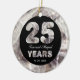 Célébrez le 25e anniversaire de mariage de votre couple préféré avec cet ornement personnalisé! Un effet éclatant de couleur argentée forme une frontière de lumière festive. Deux noms, les mots "25 ans" et une date mariage ou autre date significative sont présentés près du centre et peuvent être personnalisés.