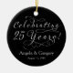 25e anniversaire de mariage en argent ornement personnalisé. Argent et noir avec le libellé célébrant 25 ans dans une police de caractères avec des fioritures. Personnalisé avec vos noms et date mariage. L'encre est de couleur argentée, mais pas métallique.
