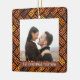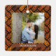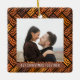 Célébrez le 1er jour férié de votre fiançailles avec notre ornement en céramique carré "2 Photos Parquet First Christmas Together". Ce design est composé d'un arrière - plan simple et élégant parquet marron, d'une typographie de style moderne, des noms du couple et de deux photos de votre choix. Cette tenue mariage unique ajoute une touche élégante à la décoration de la maison de Noël.