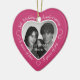 Célébrez une 8ème année heureuse de mariage avec un ornement photo personnalisé dans un cadre en forme de coeur délicieux. Téléchargez simplement votre propre photo du couple marié et elle apparaîtra dans la découpe. L'entourage rose foncé est orné d'une police et d'une décoration de caractères blancs. Les mots sont : 8ème anniversaire Mariage - 8 ans d'amour - 8 ans de joie. Sur le dos, vous pouvez personnaliser ce keepsaké avec votre propre message et peut également ajouter l'année ou une date complète si vous préférez. Note : si vous aimez le festin de huit ans mais que votre coeur est fixé sur une couleur différente, s'il vous plaît contactez-moi.