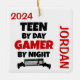 Cet ornement avec la citation "Ado by Day Gamer by Night" est parfait pour tout ado qui aime jouer aux jeux vidéo.