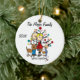 Assez autour de l'ornement en céramique de vacances de Noël de souvenir comporte un chiffre couple de bâton attendant un bébé et un petit garçon d'enfant en bas âge se tenant devant un arbre de Noël décoré, un chien brun, le chat brun, et le texte qui nous lit "prévoient !".  Vous pouvez personnaliser ce chiffre mignon ornement de bâton en ajoutant vos noms et année en cours !