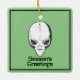 Ajoutez une touche de charme extraterrestre à votre décor de vacances avec cet ornement de Noël vert carré, avec une image accrocheuse d'une tête d'alien de l'espace. En dessous du design d'un autre monde se trouvent les mots "Bonnes Fêtes", mêlant joie festive et clin d'oeil ludique à la science-fiction. Le dos de l'ornement présente un motif amusant de têtes aliens, ce qui le rend parfait pour tous les passionnés d'OVNI, les surfologistes, les amateurs de soucoupes volantes et d'ufologie. Que vous décoriez votre arbre ou que vous cherchiez un cadeau unique, cet ornement ravira les amateurs de toutes choses cosmiques. Un complément incontournable à toute fête !