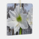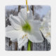 Amaryllis est une belle fleur pour les vacances et toute la saison d'hiver. Voici une tige blanche brillante de fleurs d'amaryllis contre un arrière - plan d'hiver enneigé. Cette image est également présentée comme le fond d'écran large "White Amaryllis and Snow II" sur MLeWallpapers.com.