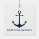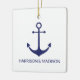 Ancrage nautique marine bleu et blanc nom de bateau personnalisé, nom de famille, nom du couple ou initiales ornement en céramique de Noël. Design minimaliste et élégant