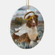 Ailes blanches de port d'ange de berger australien enduit Brown et un halo d'or tandis que la pose dans un domaine des fleurs sauvages est décrite sur les ornements en céramique assortis pour la saison de Noël.
