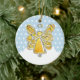 Ornement En Céramique Ange Jaune De Noël Jouant Dans L'Ornement De Neige