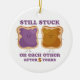 Le beurre d'arachide et la gelée, meilleurs amis, la 5ème conception d'anniversaire comportant deux tranches de pain tenant des mains et Kawaii mignon fait face. On a la gelée de raisin et on a le beurre d'arachide. Le texte indique TOUJOURS COLLÉ SUR L'UN L'AUTRE APRÈS 5 ANS. PinkInkArt.