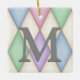 Cet élégant ornement personnalisé a un grand monogramme sur un motif arlequin de diamants rose, bleu, vert, violet et crème. Écrivez votre message personnalisé au dos d'un arrière - plan en détresse.