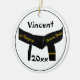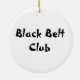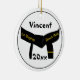 Personnalisez et datez l'unique ornement de ceinture noire de premier degré des arts martiaux avec le nom de votre artiste martiaux et l'année en cours pour commémorer un examen ou un examen de promotion de ceinture noire de 1er Dan. Cet ornement de Noël sportif customisé comprend une numériquement photo améliorée d'une ceinture noire d'arts martiaux avec une barre d'or ou une bande sur le devant avec les mots Black Belt Club sur le dos.