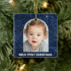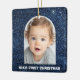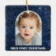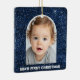 Ornement En Céramique Baby First Christmas Photo Blue Glitter Ornament