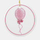 Ornement en céramique ronde avec une image de chaque côté d'un joli ballon rose noué avec un ruban rose et fini avec un joli arc rose sur blanc. Bordure rose. Voir l'ornement de sculpture en acrylique correspondant. Voir l'ensemble de la collection Anniversaire dans les TOUCHES SPÉCIALES | Section Favoris.