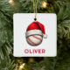 Ornement En Céramique Baseball Ball Red Santa Hat Name Christmas