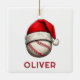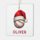 Baseball Ball Red Santa Hat Name Christmas Ceramic Ornament. Fun baseball ball with a red Santa hat and a custom name.