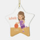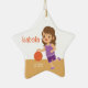 Personnalisez ce joli ornement de basket-ball pour la fille qui aime le sport dans votre vie! Cet ornement est composé d'une brune qui dribble un basket-ball sur un terrain de basket. Également disponible en d'autres couleurs pour une personnalisation supplémentaire.