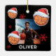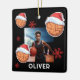 Basketball Ball Santa Hat Name Photo Christmas Ceramic Ornament. Fun basketball ball with a red Santa hat, custom name and a photo. Featuring festive basketball design wearing Santa hat, these customizable ornament brings sporty cheer to your tree, wrapping, and gift list.
