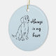 Souvenez-vous d'un ami Beagle spécial avec ce doux ornement et son croquis de chien. "Toujours dans mon coeur" est le slogan à côté de ce dessin à l'encre mignonne, et sur le dos vous pouvez personnaliser le texte avec le nom et les dates de votre chien. Plus de personnalisation est possible avec la couleur ornementale aussi.