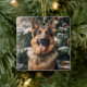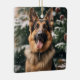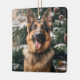 Un design avec un berger allemand dans la neige avec des arbres dans l'arrière - plan