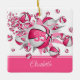 Cette ornementation en céramique de basket-ball pour filles présente une "explosion" de balles de basket de taille variée avec alternance de panneaux recolorés rose et blanc et de formes d'étoiles rose, gris et blanc - personnaliser avec le nom du joueur ou du fan et l'année à l'avant et à l'arrière - katz_d_zynes