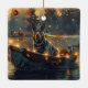 Jetez un coup d'oeil à la magie de la saison des Fêtes avec cette illustration magnifiquement détaillée, montrant un chien fier assis dans un bateau à la décoration festive, glissant à travers un lac serein de Noël. Les lumières scintillantes des pins voisins se reflètent dans l'eau, projetant une lumière chaude et festive qui renforce l'ambiance cosy. Des ornements pendent des côtés du bateau, tandis que des lanternes brillantes éclairent le chemin, créant une scène qui capture l'essence véritable de la chaleur et de la joie de Noël. Cette oeuvre nostalgique apporte une touche de magie de vacances à tout espace, parfait pour ceux qui chérissent l'esprit de la saison.