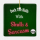 Add a darkly festive twist to your tree with this double-sided design , one side features a jolly skull in a Santa hat with the phrase “Fa-La-La-La-La Bone to Be Jolly,” while the other celebrates your sarcastic holiday spirit with “Deck the Halls with Skulls & Sarcasm.”