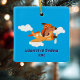 Brighten your holiday decor with this cute Christmas ornament showcasing a funny cartoon dog pilot soaring through the skies in an airplane, surrounded by fluffy white clouds. Customize it with a name or initials, and year for a unique touch. Crafted with love, this ornament is the perfect aviation themed present for pilots, aviation enthusiasts, or frequent travelers celebrating their first Christmas or any festive season. Add a personalized flair to your tree or give it to someone special!