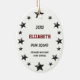 Un magnifique ornement de gardien pour l'équipe de pom, la danse de compétition ou l'équipe d'esprit. Une adorable brune danseuse en marron et noir avec pompons et une étoile encadrée, ornement à deux côtés qui a beaucoup de place pour personnaliser pour un cadeau unique pour le champion danseur. Demandes de couleurs spécifiques, de teintes de peau ou de couleur de cheveux accueillis. Oeuvre originale de la ménagerie de Night Owl, 2017.