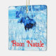 Image bleue et blanche d'un orignal de vache en milieu urbain en hiver. Texte allemand, texte italien, "Buon Natale" apparaît en rouge. Les orignaux sont des résidents de nombreuses collectivités de l'Alaska qui vivent toute l'année. Ici à Anchorage il y a environ 1500 animaux, ainsi que des loups, des ours bruns et d'autres animaux sauvages.Ils sont généralement bien élevés. Ils traversent souvent les rues aux passages piétons après avoir attendu un signal de marche.