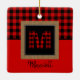 Le design personnalisé de l'ornement en plaid de buffle de Mme Monogram comprend votre monogramme en plaid de buffle rouge et noir et le nom en écriture manuscrite de pinceau. Le carré monogramme a un faux design de bordure motif burlap, et la couleur arrière - plan est rouge de Noël brillant. Parfait pour utiliser comme étiquette cadeau de votre petit-fils préféré ou pour offrir aux jeunes mariés qui viennent d'être mariés cette saison des Fêtes ! #Plaid #Ornamiens #Monogram