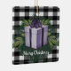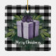 Décorez votre arbre de cette saison de vacances avec un cadeau de Noël Buffalo Plaid cadeau de Noël Ornement de Vacances en Céramique. Le design ornemental présente un cadeau de Noël rayé, orné de verdure de vacances contre un arrière - plan en vichy noir et blanc. Autres cadeaux et objets de vacances disponibles avec ce design aussi.