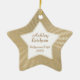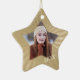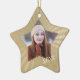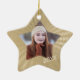 L'avant de cet ornement en forme d'étoile contient la photo de votre diplômé dans un cadre qui correspond à la forme de l'ornement. L'année de diplôme est en doré pâle en bas à droite de la photo, et tout est encadré dans un fond avec un motif doré brillant. Le dos de l'ornement a le même motif doré, avec l'étoile blanche centrale contenant votre texte personnalisé en doré plus foncé. Un beau souvenir pour tout diplômé !
