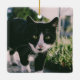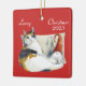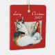 Calico Cat Gnome thème de Noël aquarelle Ornement céramique - Un magnifique aquarelle design d'un chat calico s'inclinant contre un coussin avec son ami gnome amical dans un chapeau de Père Noël rejoignant la scène. Personnalisez-le avec le nom de votre chat et Noël de l'année. Vous pouvez modifier le texte à tout ce que vous voulez ou le supprimer complètement. Ce serait un joli souvenir d'un animal de compagnie qui est passé ou de l'adorable chat actuel qui réside maintenant. Joyeux Noël de Kristin 'n' Steve à KNS Gear, et merci d'avoir fait le shopping dans notre magasin de Noël !