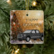 Cet ornement en céramique chaude présente un camion noir dans une scène de neige hivernale de Noël avec "Happy Holidays!" en texte noir et gris. Personnalisez le dos de ce ornement avec un nom et une année.
