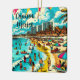Cancun, Mexique ornement de Noël garde souvenir. Pop art bande dessinée style art scène d'une plage avec une ambiance vintage. AI Art dépeint des gens qui s'amusent sur la plage avec des hôtels et des immeubles d'appartements dans l'arrière - plan, de jolis palmiers, des parapluies colorés et un magnifique ciel bleu nuageux à Cancun, au Mexique.