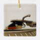 Un LP de 12 pouces est joué. Le stylet est en contact avec la surface par wikipedia : Un enregistrement phonographique (aussi connu sous le nom de disque gramophone, en particulier en anglais britannique), souvent simplement enregistré, est un support de stockage pour le son analogique sous forme de disque plat avec une rainure spirale modulée inscrite. La rainure commence généralement près de la périphérie et se termine près du centre du disque. Au début, les disques étaient généralement faits de coquillages; à partir des années 1940, le chlorure de polyvinyle est devenu commun. Depuis - phonographe, disque, vinyle, disque, discothèque, 12 inc, 33 giri, long play, lp record, cadeau de noël souvenir ornement céramique