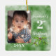 Célébrez le 2e Noël de votre bébé avec un ornement commémoratif pour votre arbre. Cet ornement en céramique est une excellente façon de commencer une tradition familiale et un cadeau patrimonial pour votre enfant plus tard dans la vie. Le traditionnel vert de Noël est l'arrière - plan. Ajoutez votre photo de votre petit, customisez le nom et l'année et vous avez un grand rappel d'un moment capturé dans le temps. Design ©Vann-Horn Créative Photo & Designs.