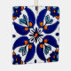 Un motif floral bleu et blanc stylisé, avec des touches d'orange, dans le style traditionnel Talavera
