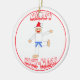 Customisez l'ornement rond d'arts martiaux de joyeuse de coup-de-pied ceinture bleu-clair mignonne de MAS avec l'année en cours sur le dos pour votre artiste martial dans le karaté, le Taekwondo, le fu de kung, le judo ou le jitsu de ju. Ces vacances datées faites sur commande d'arts martiaux folâtrent des caractéristiques d'ornement une ceinture bleu-clair donnant un coup de pied le type utilisant un casquette rouge de Père Noël avec le joyeux MAS de coup-de-pied de mots !