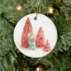 Un cerf d'aqua vintage se tient dans la neige devant les arbres de Noël, brosses à bouteilles roses et rasées.