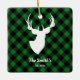 Ornement En Céramique Cerf Silhouette verte Noir Buffalo Plaid Famille