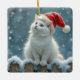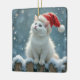 Ornement En Céramique Chat de Noël blanc sur une clôture