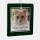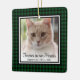Cet ornement de photo de chat mémorial adorable avec un bord à carreaux de buffle vert, les mots "Pour toujours dans nos cœurs", le nom de votre chat et ses années de vie sera beau sur votre arbre. Vous le chérirez autant que vous chérissez vos souvenirs de votre chat bien-aimé qui est décédé.