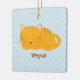 Le design adorable présente une douce illustration d'un chaton à tabby orange qui fait une sieste sur un mignon coeur rose ou bleu et un arrière - plan motif empreinte de patte.
