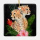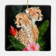 Cheetah Bouquet II par Annie Warren. Deux guépards sont encadrés de feuilles tropicaux et de verdure contre un arrière - plan noir. | 164453Z