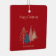 Cherry Red with 4 graphic Christmas trees in green pink and gold Christmas Card is stylish with a holiday feel. Each tree is individual and the colors are subtle and look great against the Christmas cherry red. This ornament can be personalized with your own photo, the year, your preferred holiday greeting and names. The ornament also coordinates with a range of Holiday Party stationary and party supplies. Giving a photo ornament each year should be a tradition for grandparents and family members. Yearly photo ornaments build a history to be relived every holiday season for your loved ones.